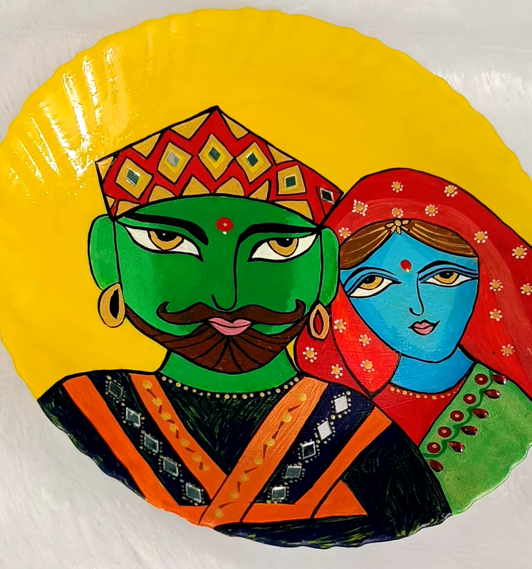 Hand Painted wallplate in Rajasthani Folk- Design 1